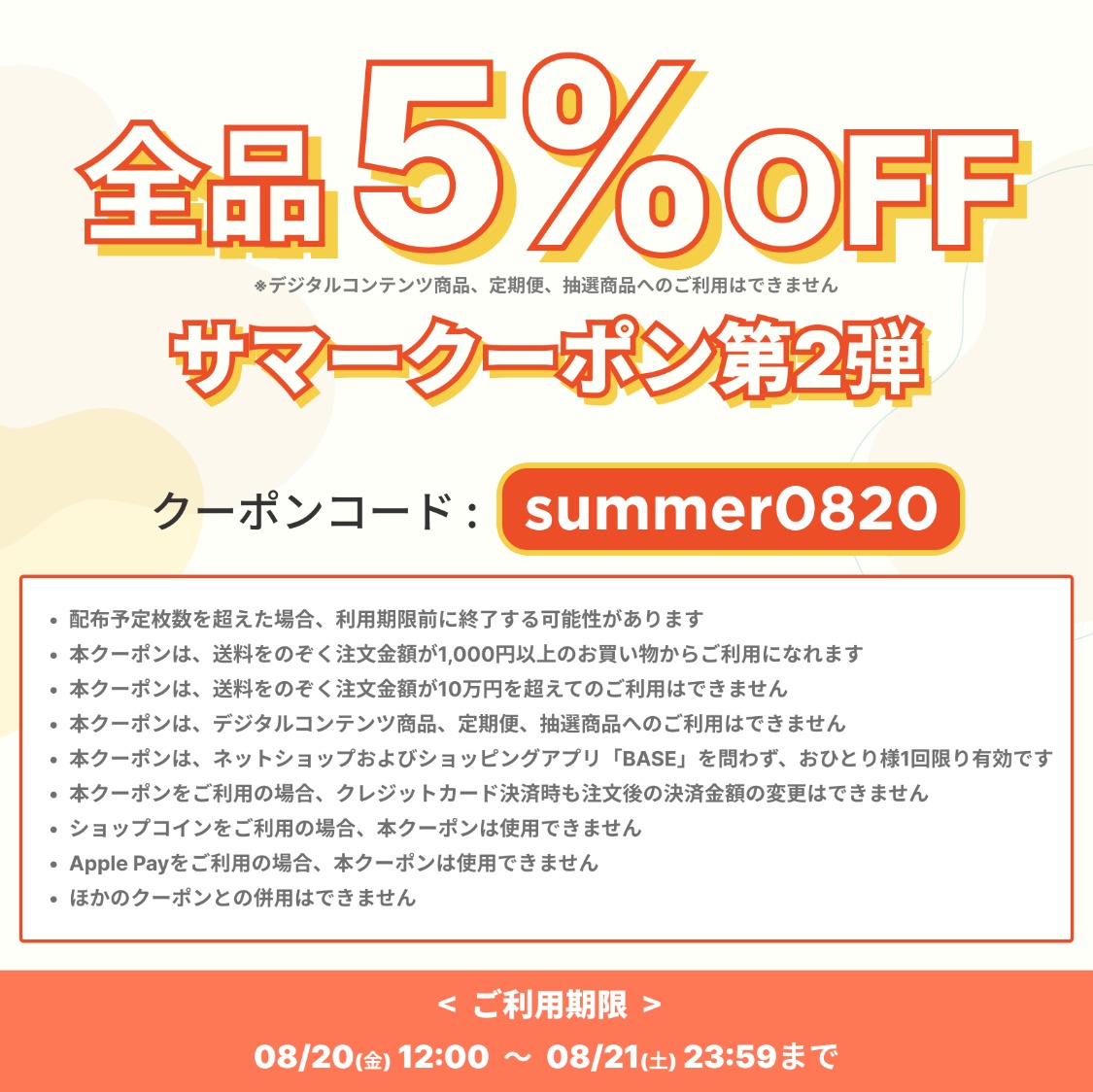 「BASE」サマークーポン第2段!5%OFFクーポンをプレゼント♪